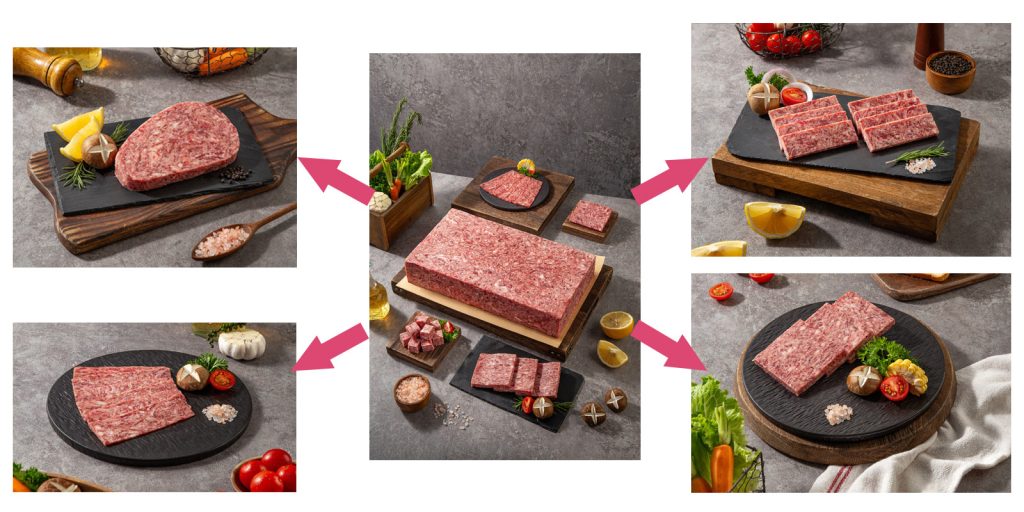 Chúng tôi phân phối sỉ thịt kết dính chế biến từ bò Wagyu F1 và trâu, phù hợp cho siêu thị, nhà hàng và nhiều hình thức chế biến khác.